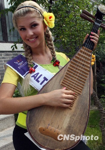 组图:国际旅游小姐佳丽弹琵琶