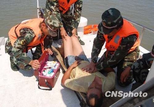 图为搜救人员对落水人员进行施救。中新社发 王力鹏 摄