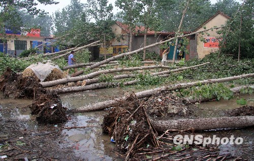 图:山东部分乡镇遭狂风袭击 通讯供电中断(2)