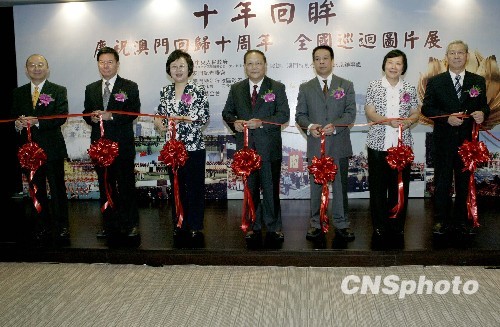 由中央人民政府驻澳门特别行政区联络办公室文化教育部和澳门记者联会主办的庆祝澳门回归祖国十周年《十年回眸》图片巡回展首站展览8月28日在北京澳门特区驻京办开幕。