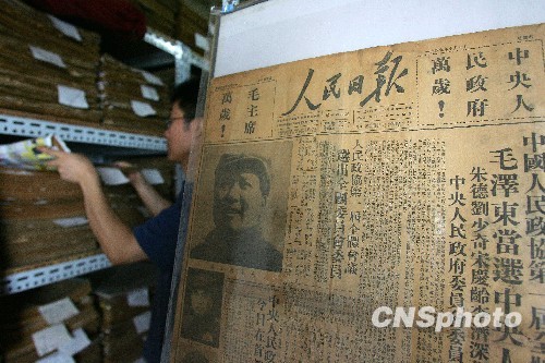 8月28日,家住北京望京的李先生向记者讲述他的报纸人生。李先生自幼喜爱读报、剪报,05年开办了“生日报纸”业务,同期也开始了报纸收藏。他收藏的有人民日报、光明日报、北京晚报、文汇报等几十种报纸,其中人民日报从1948年创刊号至今的所有报纸都在其收藏之列。李先生表示,为了庆祝新中国成立60周年,他将在自己居住的社区办“国庆报纸展”,届时从建国至今60年内每年10月1日的各种报纸将集中亮相。