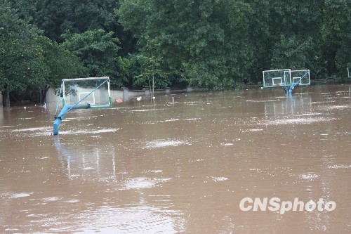 图为被淹没的学校操场。中新社发 曾朗 摄