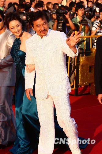 图为成龙亮相红地毯。中新社发 李学仕 摄