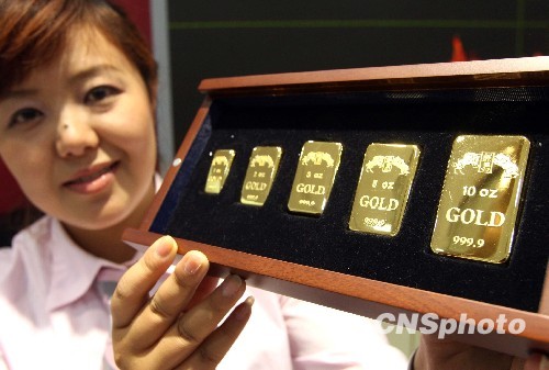 9月3日,一款手续费超低的投资型实物金条在北京菜百公司独家首发上市,这款金条以最低每克3元的手续费(定单购买),开创了中国全新的黄金零售价格,打破传统销售模式。该金条重量分为1盎司、2盎司、3盎司、5盎司、10盎司5种规格,均为AU9999,分为现款现货、定单销售两种销售模式。中新社发 张宇 摄