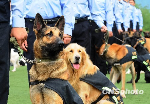 北京市公安局国庆安保警犬技术誓师大会在警察训练总队举行。中新社发 侯宇 摄