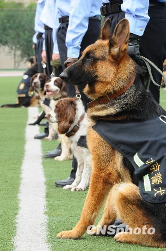 北京市公安局国庆安保警犬技术誓师大会在警察训练总队举行。中新社发 侯宇 摄
