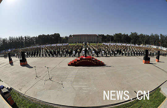 再过24天,这个激动人心的场景将在新中国成立60周年庆典上再次出现。然而,与十年前不同的是,今年联合军乐团不仅人数扩充为1321人,演奏乐曲增加至43首,而且在群众游行环节他们还将首次与2500人的合唱团和200人的民族打击乐团一起合作,形成更加恢宏的演奏气势和极具震撼力的视听效果。
