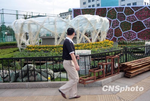 图为北京长安街上的国庆立体花坛。中新社发 吴芒子 摄