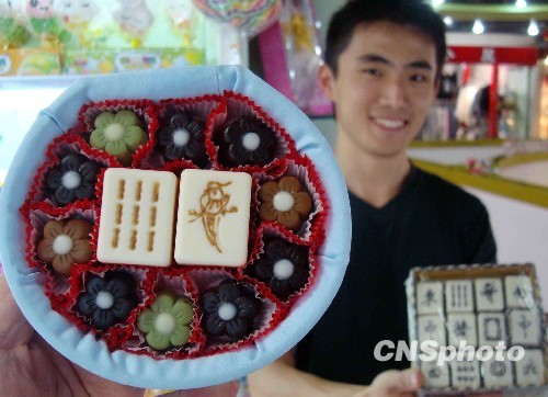 图:“麻将牌”巧克力亮相苏州(2)