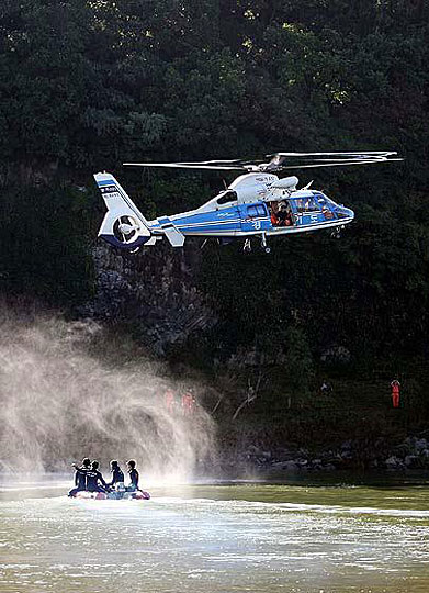 图为韩国救援人员正在搜索失踪人员。