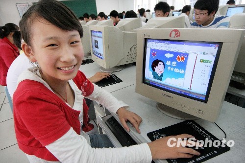 2009年9月8日,一名学生展示自己为老师设计制作的“电子贺卡”。教师节将至,江苏省赣榆县许多学生动手制作别样“贺卡”,表达对老师的节日祝福。中新社发 司伟 摄