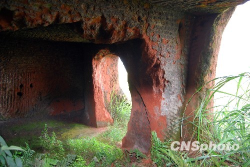 江安考古人员等来到鸡冠寨山顶,对古墓群进行实地考察。中新社发 曾朗 摄