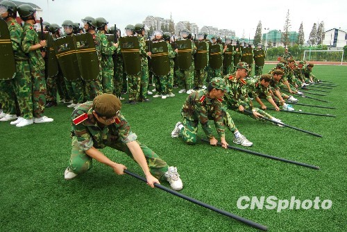 江苏扬州“90后”新生军训增加防暴科目(2)