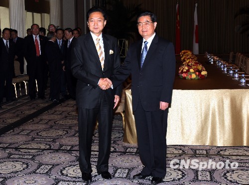 图为中国国家主席胡锦涛在纽约会见了日本首相鸠山由纪夫。中新社发 孙宇挺 摄