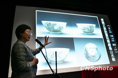 图为台北故宫冯明珠副院长在介绍此次大展中台北故宫将展出的文物。中新社发 富田 摄