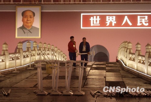 图:北京天安门金水桥护栏拆除(2)
