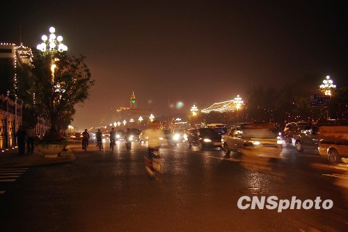 北京长安街流光溢彩迎国庆。中新社发 九州 摄