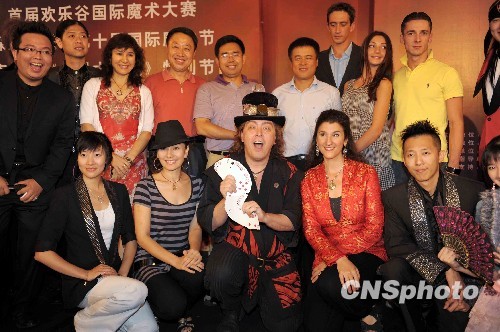图为国际魔术大师在新闻发布会上集体亮相。中新社发 陈文 摄