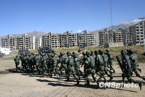 图为武警官兵正在布控。中新社发 徐长安 摄