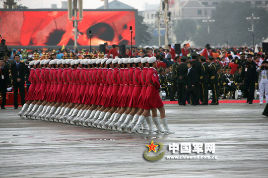 10月1日,天安门广场上的受阅部队抓紧练习。