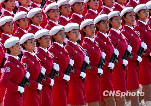 国庆阅兵:靓丽女民兵方队(2)——中新网