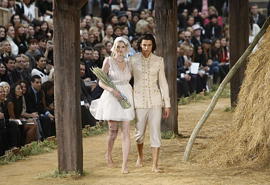 图为模特在法国巴黎展示德国设计师卡尔·拉格费尔德为香奈儿(Chanel)设计的春夏新品。