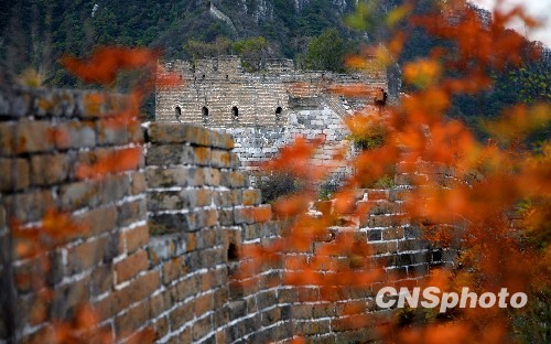 京郊怀柔箭扣西大墙长城秋色正浓。中新社发 卜向东 摄