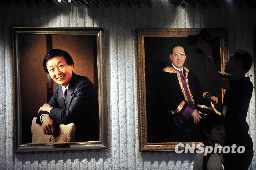 图为中大行政大楼挂上高锟的油画。中新社发 谭达明 摄