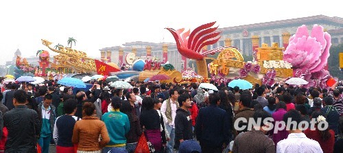 组图:数万人冒雨惜别国庆彩车(3)