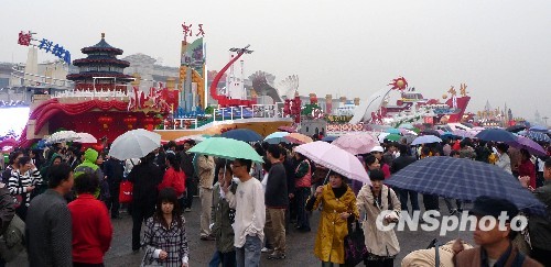 组图:数万人冒雨惜别国庆彩车(5)