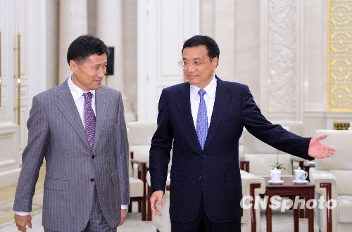 图为李克强会见蒙古国对外关系与贸易部部长。中新社发 廖攀 摄