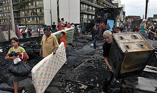 10月12日,在巴西圣保罗西部的迪奥古皮里斯,人们把自己的物品搬离火灾现场。住在迪奥古皮里斯的300多户居民在这场火灾中损失惨重。