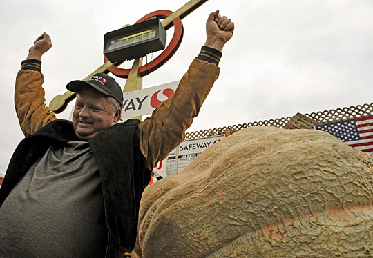 10月12日,美国加利福尼亚州农场主Don Young种植的南瓜以1658磅(约752.06公斤)打破世界纪录。