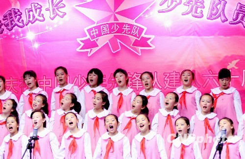苏州少先队员载歌载舞庆“生日”。中新社发 王建中 摄