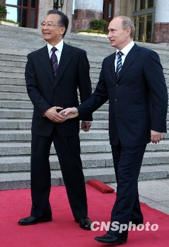 10月13日下午,中国国务院总理温家宝在北京人民大会堂东门外广场举行仪式,欢迎俄罗斯联邦政府总理弗拉基米尔·弗拉基米罗维奇·普京访问中国。