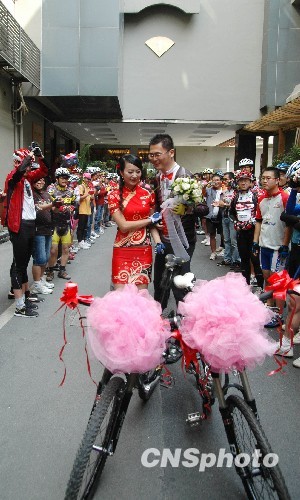 图:苏州“上演”自行车婚礼 (2)