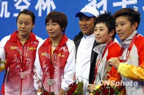 图为国家队总教练李永波与爱徒们合影。中新社发 张宇 摄