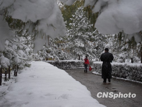 据悉,当地很少出现在深秋时节降雪的天气。 中新社发 王云龙 摄