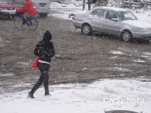 据悉,当地很少出现在深秋时节降雪的天气。 中新社发 王云龙 摄