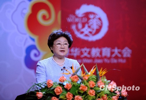 10月20日,国侨办主任李海峰在成都举办的首届世界华文教育大会上致辞。中新社发 廖攀 摄