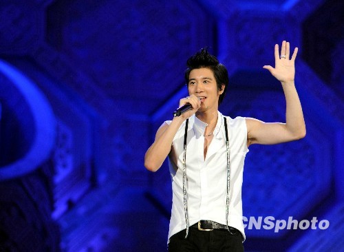 台湾著名歌手王力宏献艺民歌节。中新社发 蒋雪林 摄