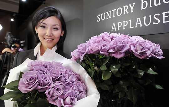 10月20日,日本一公司在东京的新闻发布会上展示该公司通过转基因技术培育出的蓝玫瑰。这种转基因玫瑰不同于由白玫瑰染色技术培育而成的蓝色玫瑰,该公司计划于近期将这种玫瑰推向销售市场。