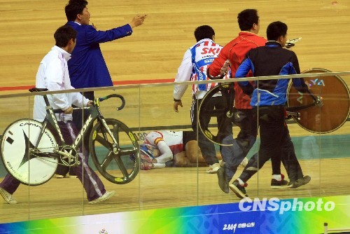 据中国自行车协会相关人士透露,金龙的伤最终确诊为右侧肩胛骨骨折。中新社发 汤彦俊 摄