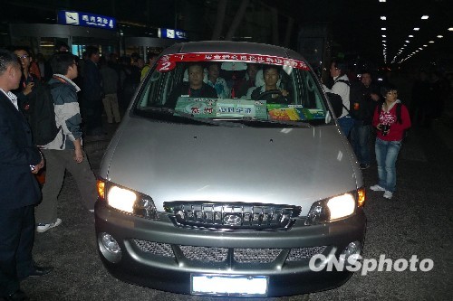 乘别克商务车抵运动员村 不理记者呼喊