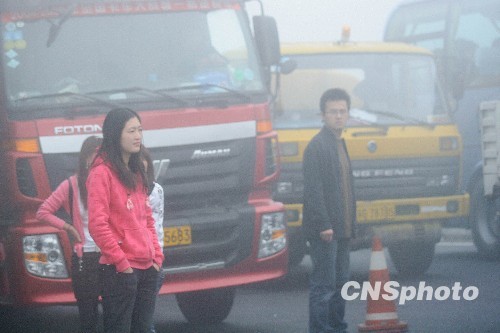 江苏赣榆高速因大雾关闭 大批车辆滞留(2)