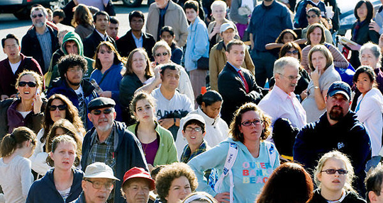 图为美国马里兰州罗克维尔的一家卫生所外人们在排队等待接种甲流疫苗。