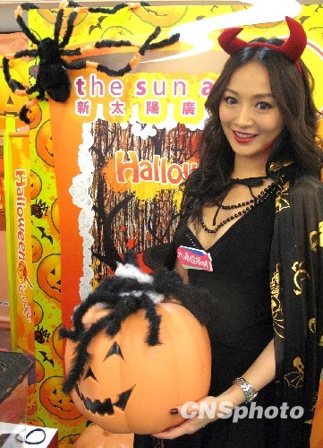 十月二十二日,香港一商家举办《新地千奇百怪昆虫展》,多款首次在香港公开展出的世界各地稀有昆虫动物,将万圣节欢乐提前带给市民。图为香港名人红星吴亭欣出席参与活动。中新社发 张勤 摄