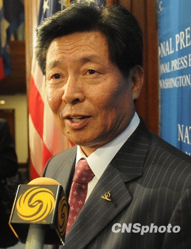 图为10月26日,魏家福在美国国家记者俱乐部中美贸易等问题发表演讲后接受记者采访。中新社发 吴庆才 摄