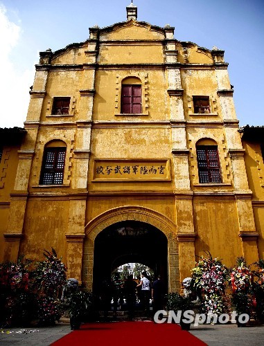十月二十七日,云南陆军讲武堂建校百年庆典系列活动《百年军校 将帅摇篮》主题展览开展仪式在昆明市陆军讲武堂举行。云南陆军讲武堂是中国最早培养军官的学校之一,从1909年开办,至1928年结束,共培养学生9000余人,历届毕业生中,有些后来成为杰出的无产阶级革命将领,如朱德、叶剑英等300余名将帅,为中国近现代史写下了浓墨重彩的一笔。图为保存完好的云南陆军讲武堂正门。中新社发 刘冉阳 摄