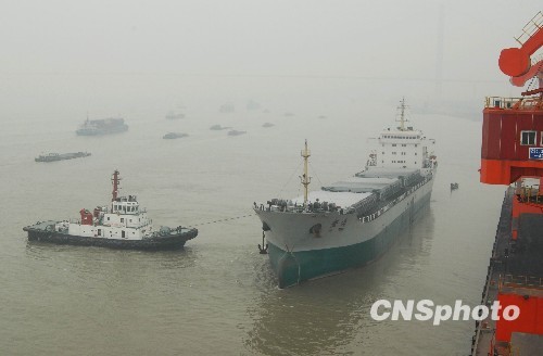 图:浓雾锁长江严重影响船舶航行(2)